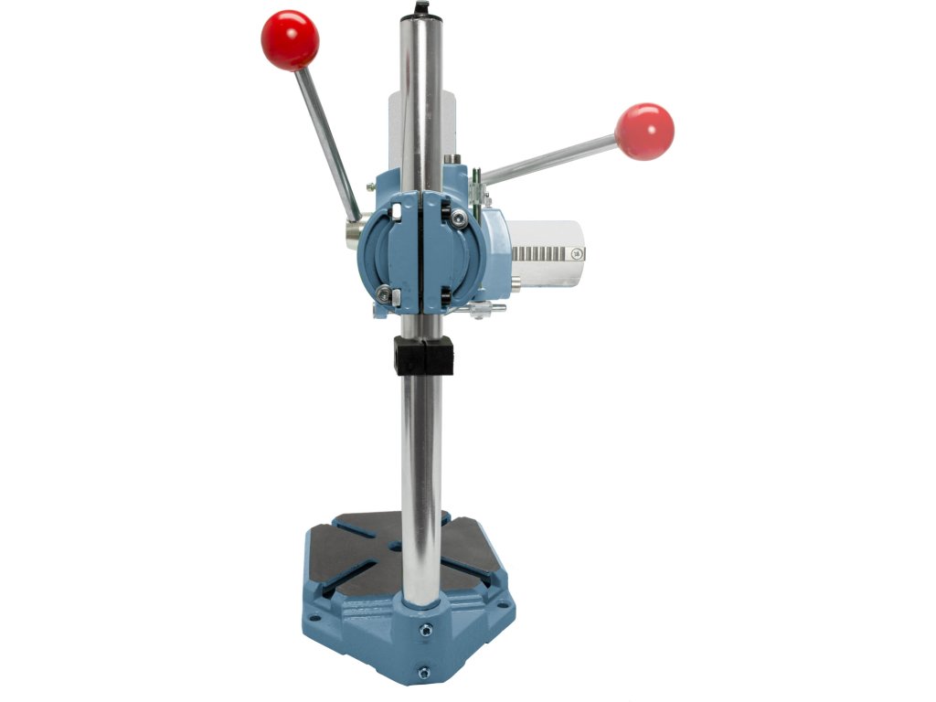 - stojan má částečně otočnou hlavu a lze jej proto nastavit na vrtání pod úhlem od 0-90°