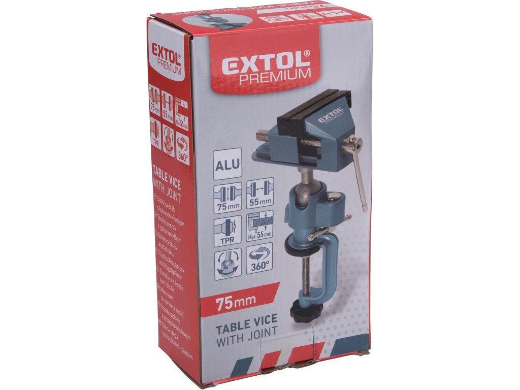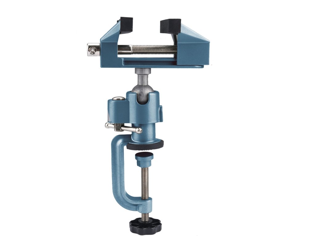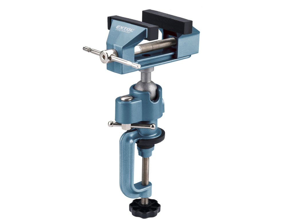 - tělo svěráku je vyrobeno z hliníku a čelisti jsou opatřeny odnímatelnými pryžovými krytkami; kloub s fixací dovoluje nastavení téměř ve všech směrech