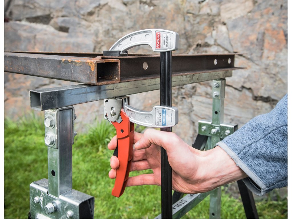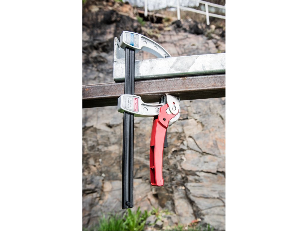 - všechny pracovní části ráčnového mechanismu jsou zesílené a vyrobené z kovu, proto lze také vyvinout vyšší upínací sílu až 300kg