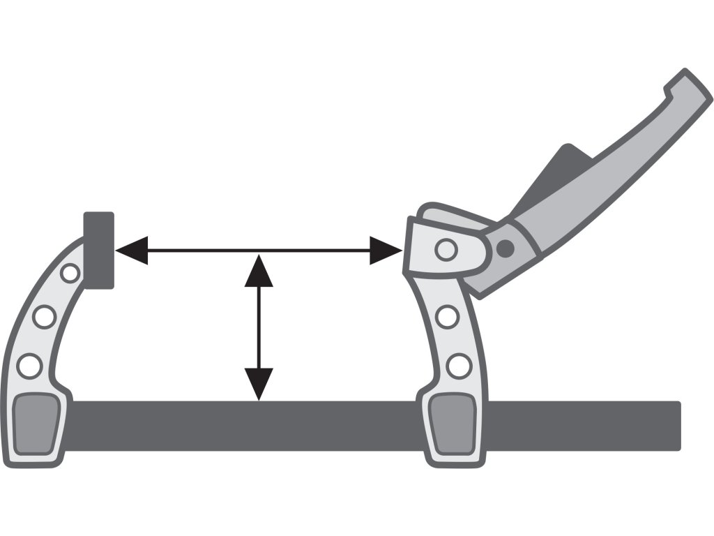 - obě upínací ramena jsou z dostatečně masivního profilovaného hliníkového odlitku, aby zajistila hladký posuv a nízkou váhu pro pohodlnou manipulaci s výrobkem