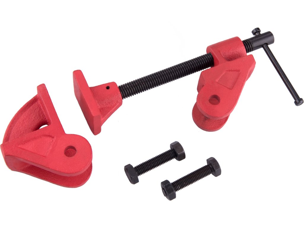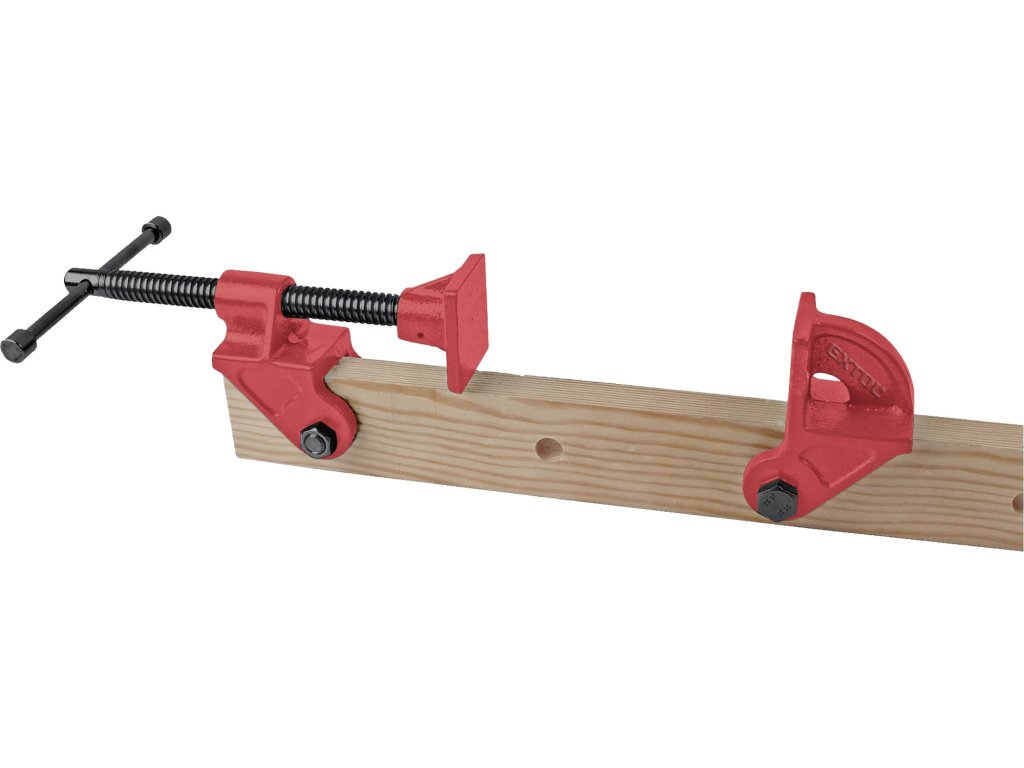 - svěrku lze namontovat na dřevěný či kovový hranol/profil o tloušťce max 1"/26mm libovolné délce; pracovní délku mezi čelistmi svěrky lze potom nastavovat do předvrtaných pozic na hranolu/profilu a fixací pomocí dodávané sady šroubů a matic