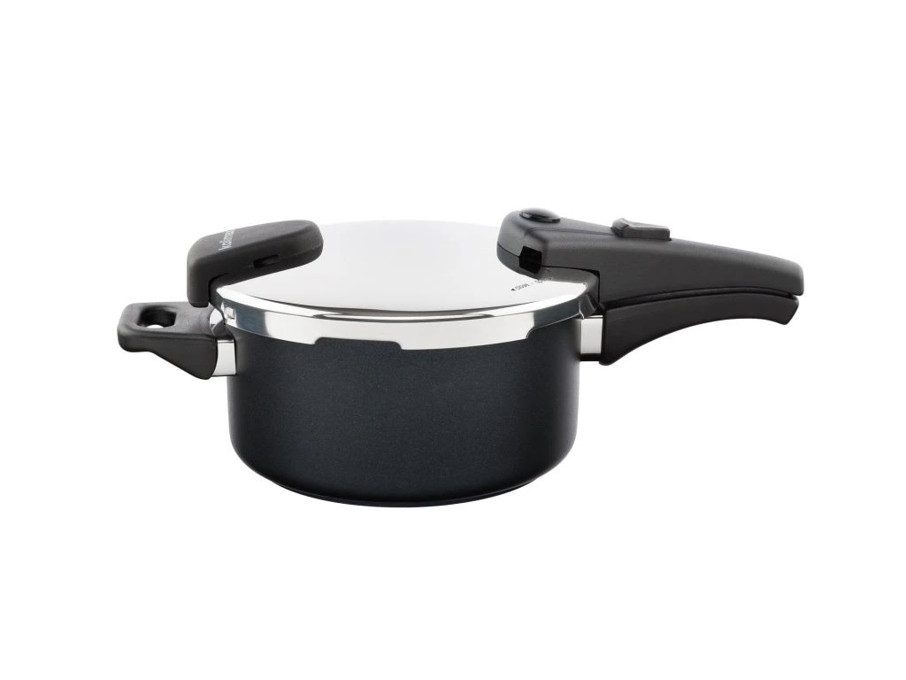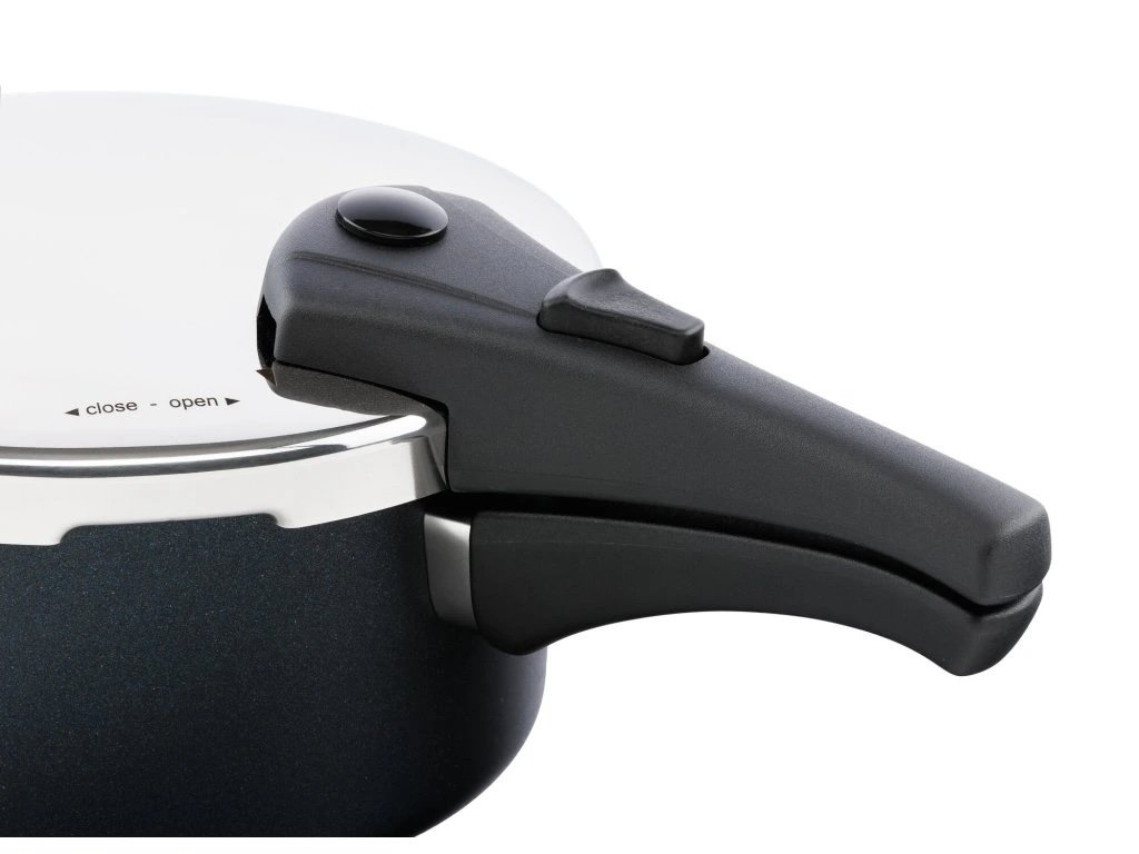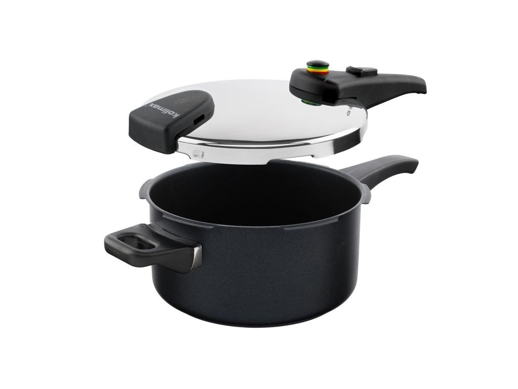 Tlakový hrnec z nerezavějící oceli COMFORT BLACK s oboustranným nepřilnavým povrchem se vyznačuje snadnou obsluhou, jednoduchou údržbou a dlouhou životností.