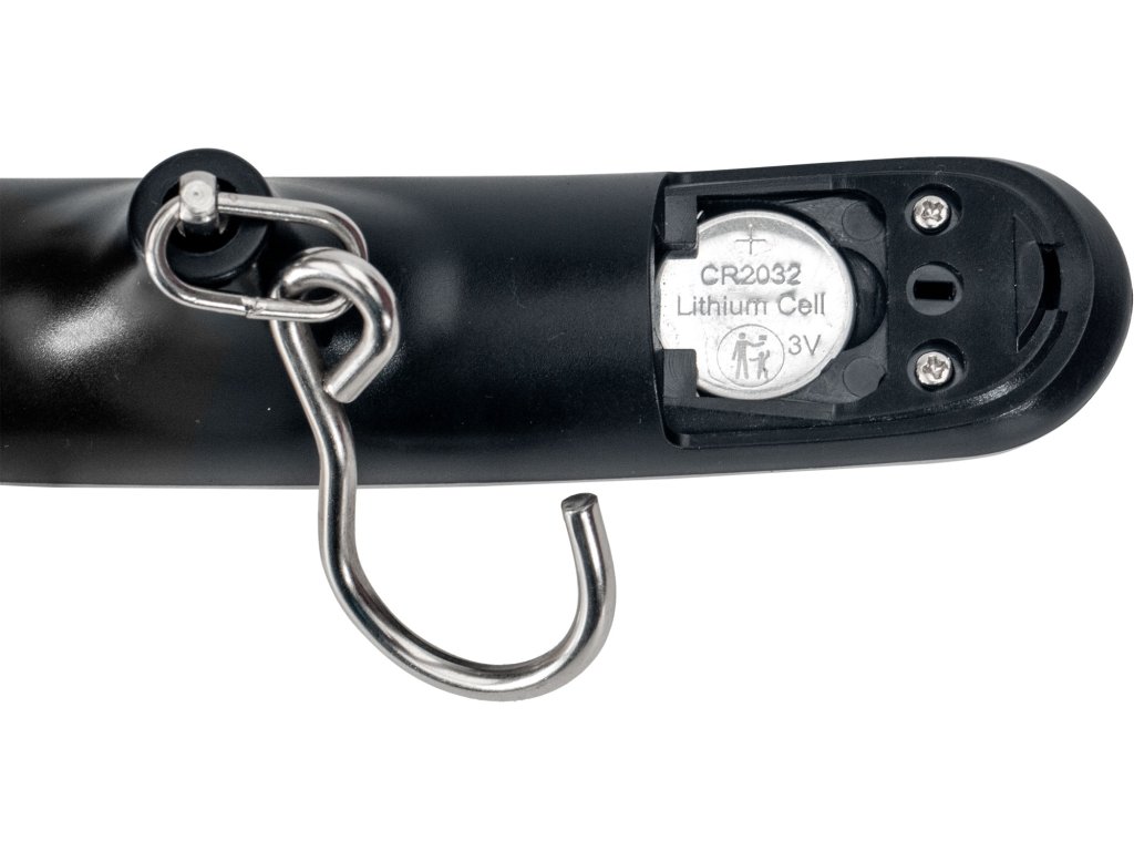 - s podsvíceným LCD displejem a nylonovým páskem pro rozšíření vážení o předměty s větším obvodem než dovolí pojmout háček váhy