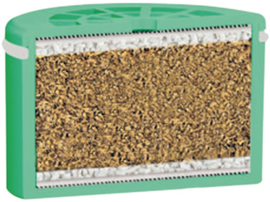 Aktivní složka: Patentovaná filtrační náplň KDF a síran vápenatýMechanismus účinku: Katalytická oxidace/redukce (chemická přeměna) Použití: Snížení obsahu anorganických kontaminantů přeměnou: volného chlóru, chloraminu, železa rozpuštěného ve vodě, zápach sirovodíku, těžkých kovů (arzen, olovo) apod. Antibakteriální ochrana snižuje množení bakterií, plísní a řas, které se ve filtru po nějaké době vytvoří, což prodlužuje životnost filtru (filtr neobsahuje toxické elementární stříbro, které se do některých filtrů z tohoto důvodu přidává). Životnost filtru: cca 45 000l vody (6–12 měsíců), v závislosti na znečištění chlórem či jinými kontaminanty.