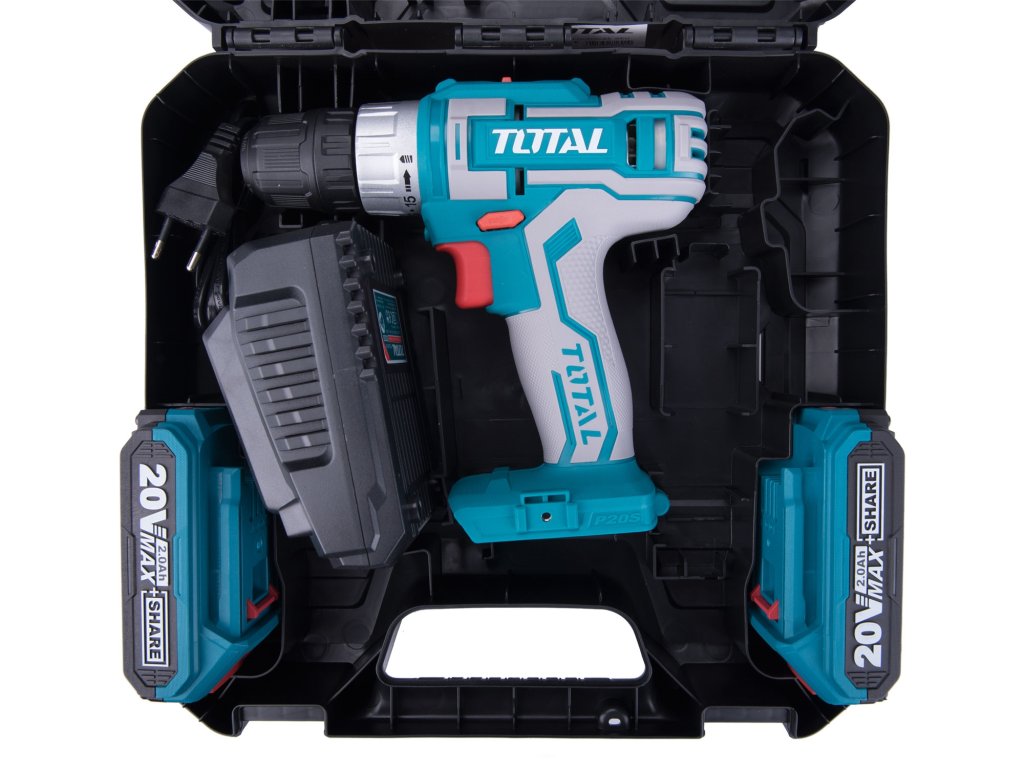 Lehký a výkonný dvourychlostní vrtací aku šroubovák s vysokým utahovacím momentem pro vrtání a šroubování do kovu a dřeva. Akumulátor lze použít ve všech 20V aku strojích z řady Total. Díky Li-ion technologii je možné akumulátory kdykoliv dobíjet, aniž by se tím snižovala jejich kapacita. Li-ion akumulátor také ztrácí energii vlivem samovybíjení velmi pomalu a vydrží dlouho nabitý.