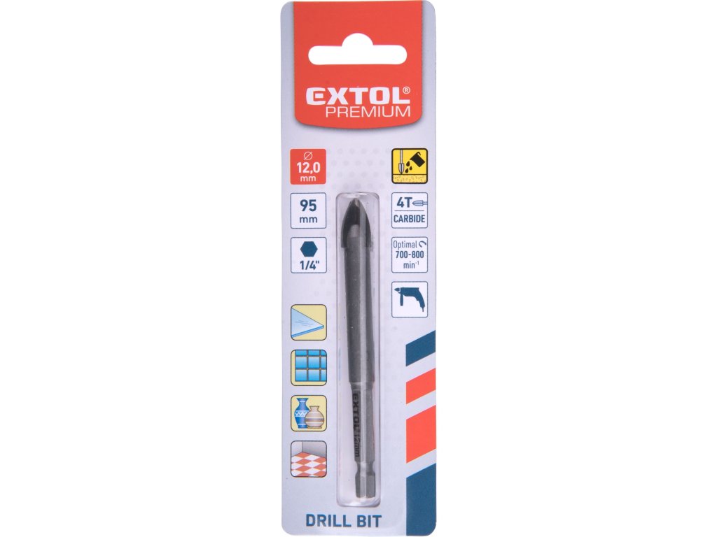 - karbidový vrták se čtyřmi břity slouží k vrtání děr do nejrůznějších stavebních materiálů jako např. dlažba, obklady, keramika, sklo atd.