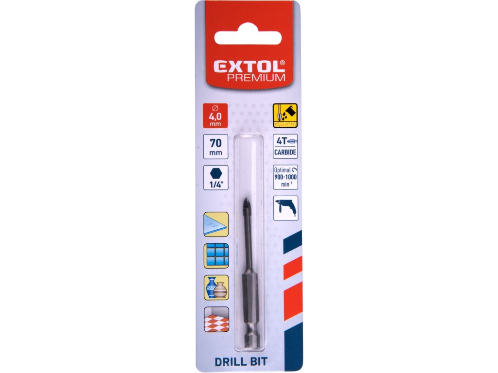 - karbidový vrták se čtyřmi břity slouží k vrtání děr do nejrůznějších stavebních materiálů jako např. dlažba, obklady, keramika, sklo atd.