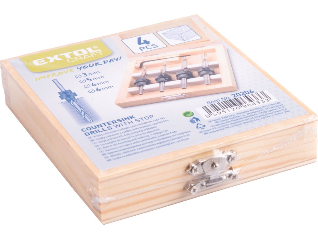 vrtáky do dřeva s dorazem, sada 4ks, O 3-4-5-6mm, délka 76-94mm