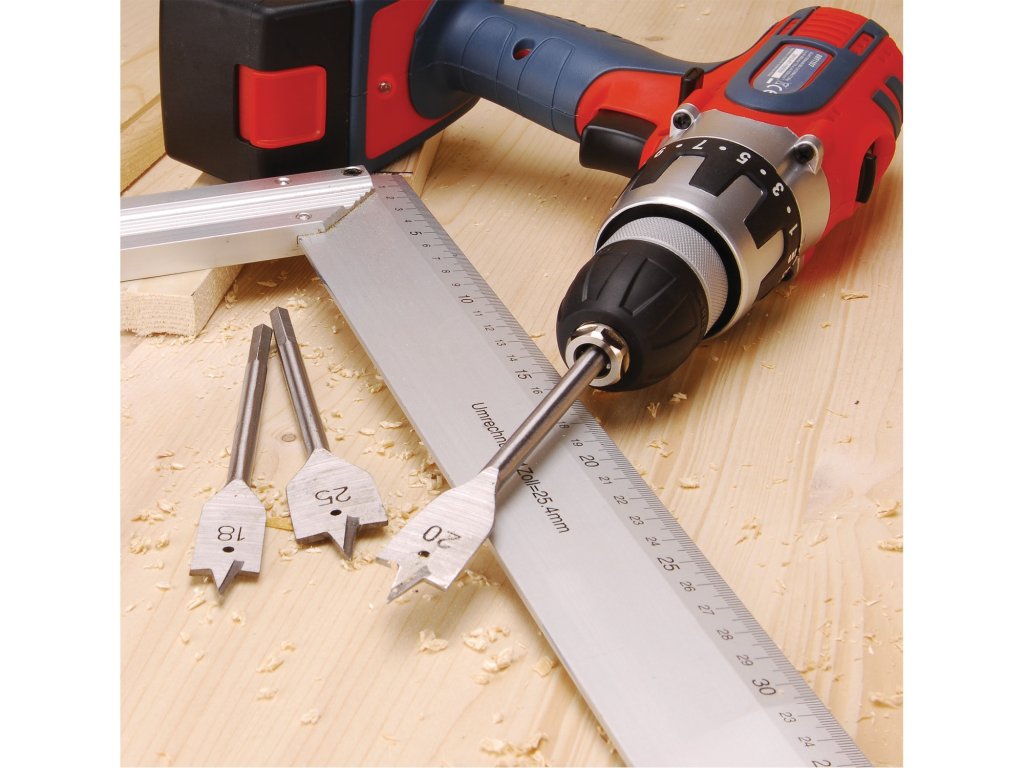 Plochý vrták je vhodný pro rychlé vrtání do všech druhů měkkého i tvrdého dřeva.