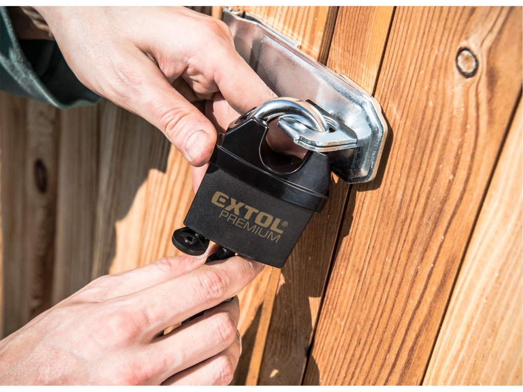 - plastový kryt chrání vnitřní kovové části proti vodě a nečistotám, zámek je tak vhodný do venkovního prostředí