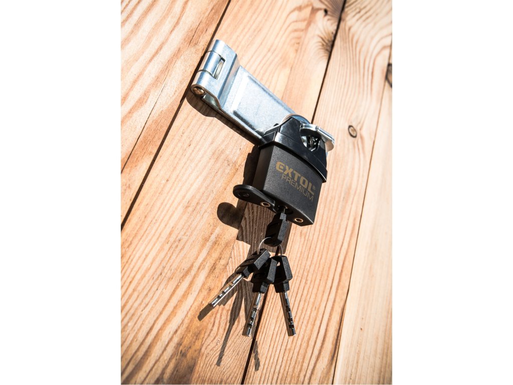 - vyvýšené tělo zámku z části zakrývá závěsné oko a zvyšuje tak ochranu proti přeštípnutí a přepilování
