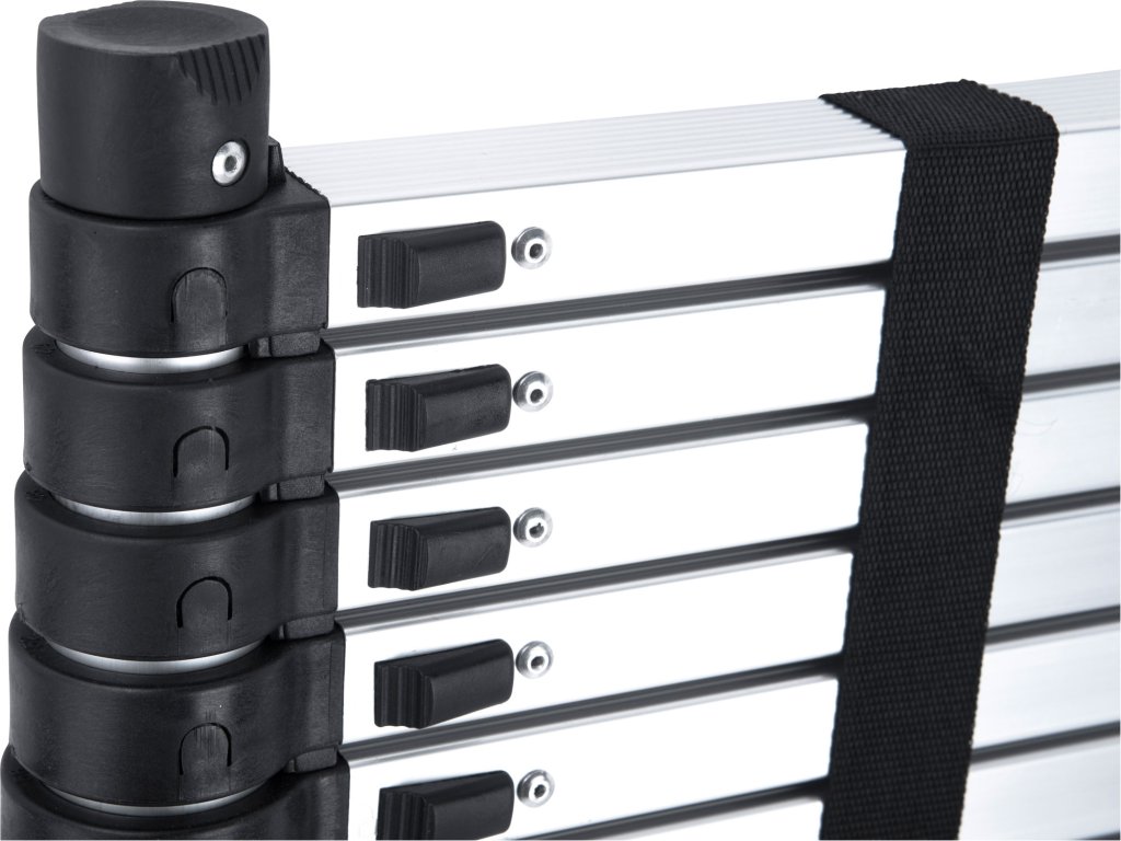 doplňující parametr: | max. výška 3,2m, rozměry složeného žebříku v.90 x š.86cm, nosnost 150kg, 10 příček, hmotnost 10,5kg, šířka základy (v místě na podlaze) 86cm, šířka žebříku v teleskopické části 30-34cm |